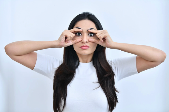 Μια κοινή άσκηση είναι γνωστή ως eye-opener. Στην ουσία, χρησιμοποιείτε τα δάχτυλά σας για να κάνετε το σχήμα κιαλιών.
