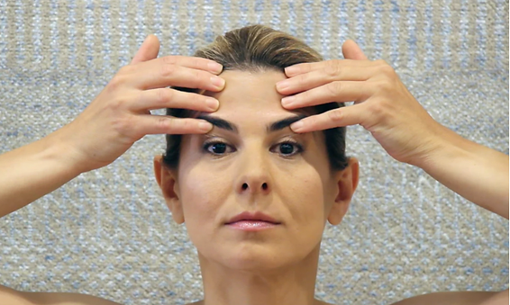 Ένας άλλος τρόπος για να το κάνετε είναι να τοποθετήσετε και τις δύο παλάμες σας στους κροτάφους, να πιέσετε τις παλάμες προς τα πάνω και πίσω για να ανυψώσετε τις πλευρές του προσώπου.