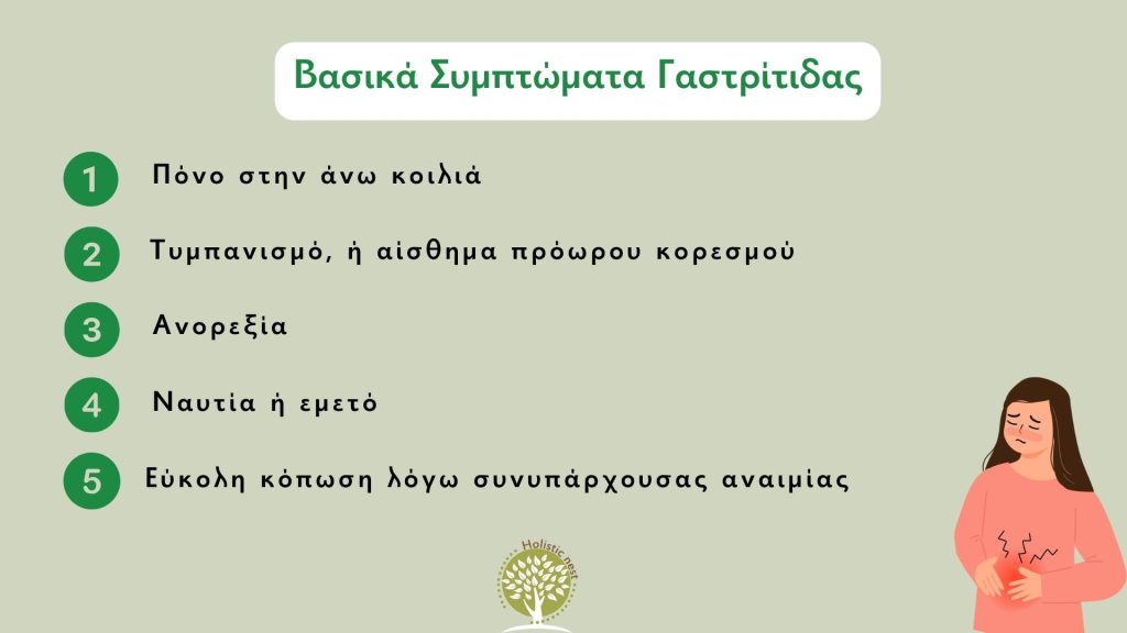 Ας περάσουμε τώρα στα συμπτώματα της γαστρίτιδας.